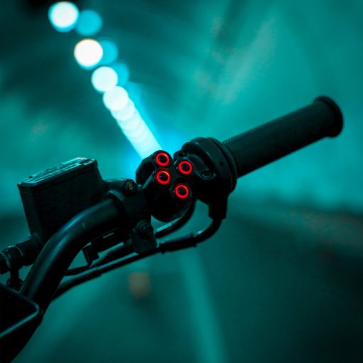 Commutateurs de commande au guidon de moto avec indicateurs LED intégrés.