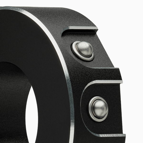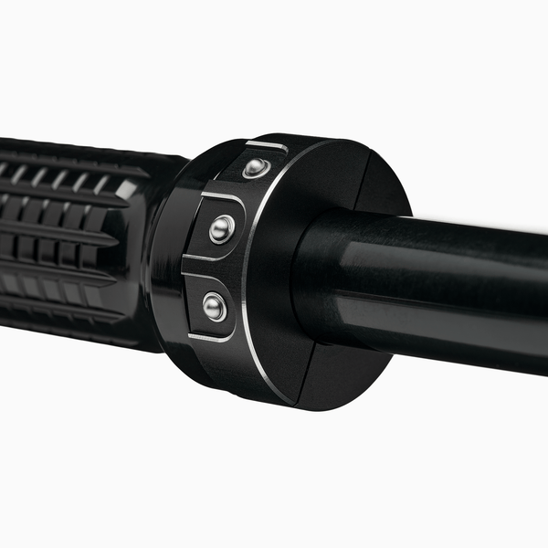 Les deux moitiés du boîtier se fixent l’une contre l’autre avec deux vis en acier inoxydable, s’adaptant aux guidons de 22 mm ou de 1 pouce de diamètre.