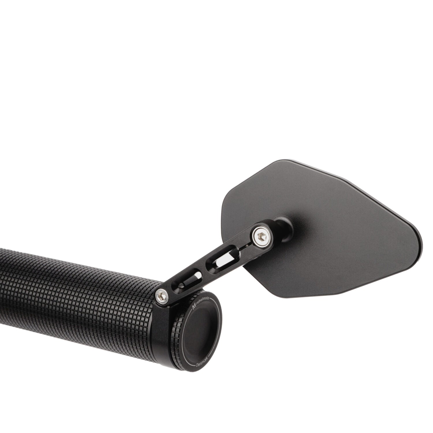 Le design du joint à rotule du rebel mirror est unique, permettant un réglage multidirectionnel du corps du miroir tout en restant mince et élégant, avec une épaisseur de seulement 3,5 mm. Le rebel mirror – Arrow peut être installé dans différentes positions, à gauche ou à droite, en dessous ou au-dessus du guidon. Le corps du miroir peut être orienté dans toutes les directions pour s’adapter parfaitement à la position de conduite.