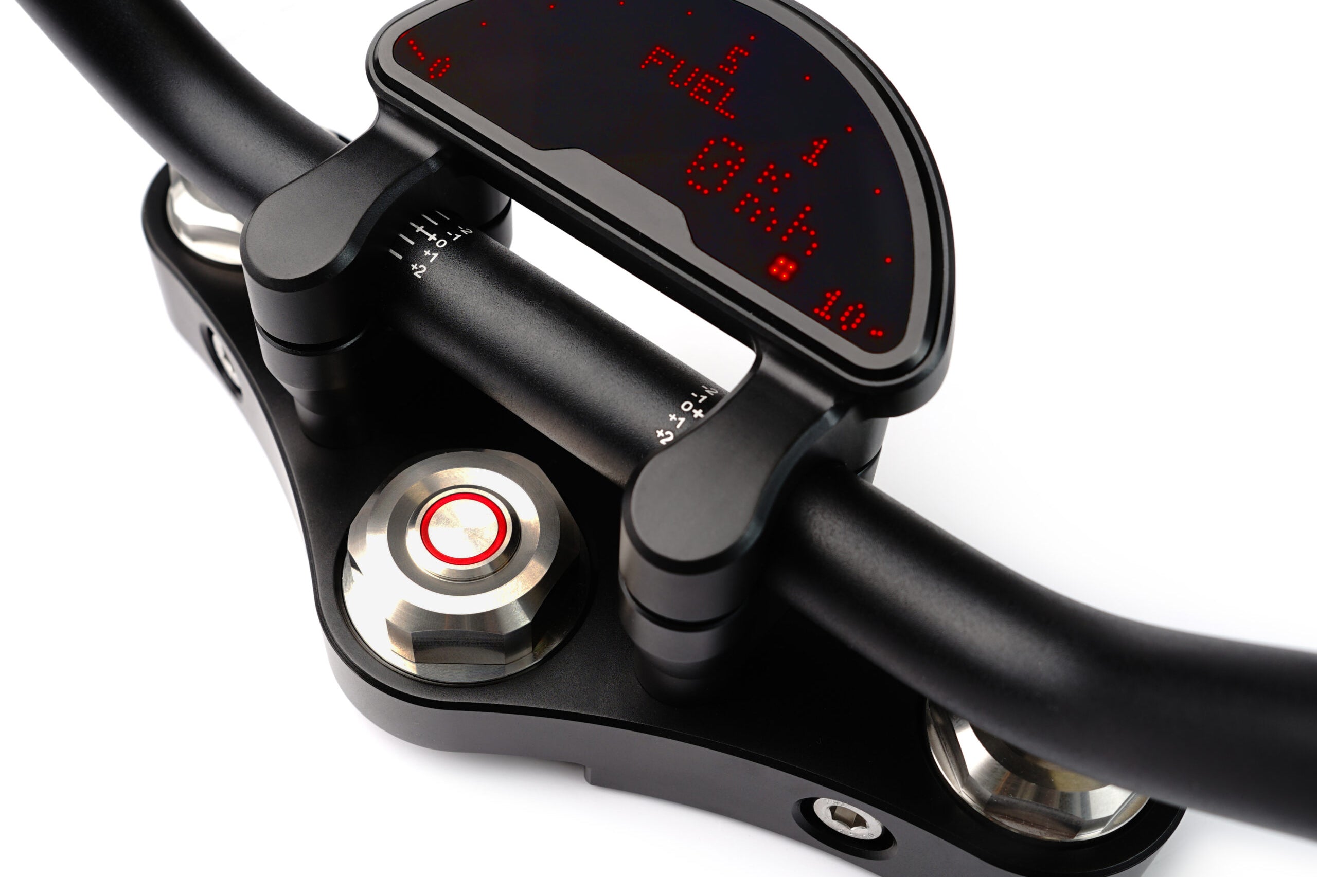 Ces pontets assurent un maintien parfait du guidon et contribuent à la rigidité et à la précision de la direction, tout en ajoutant une touche esthétique soignée au poste de pilotage.