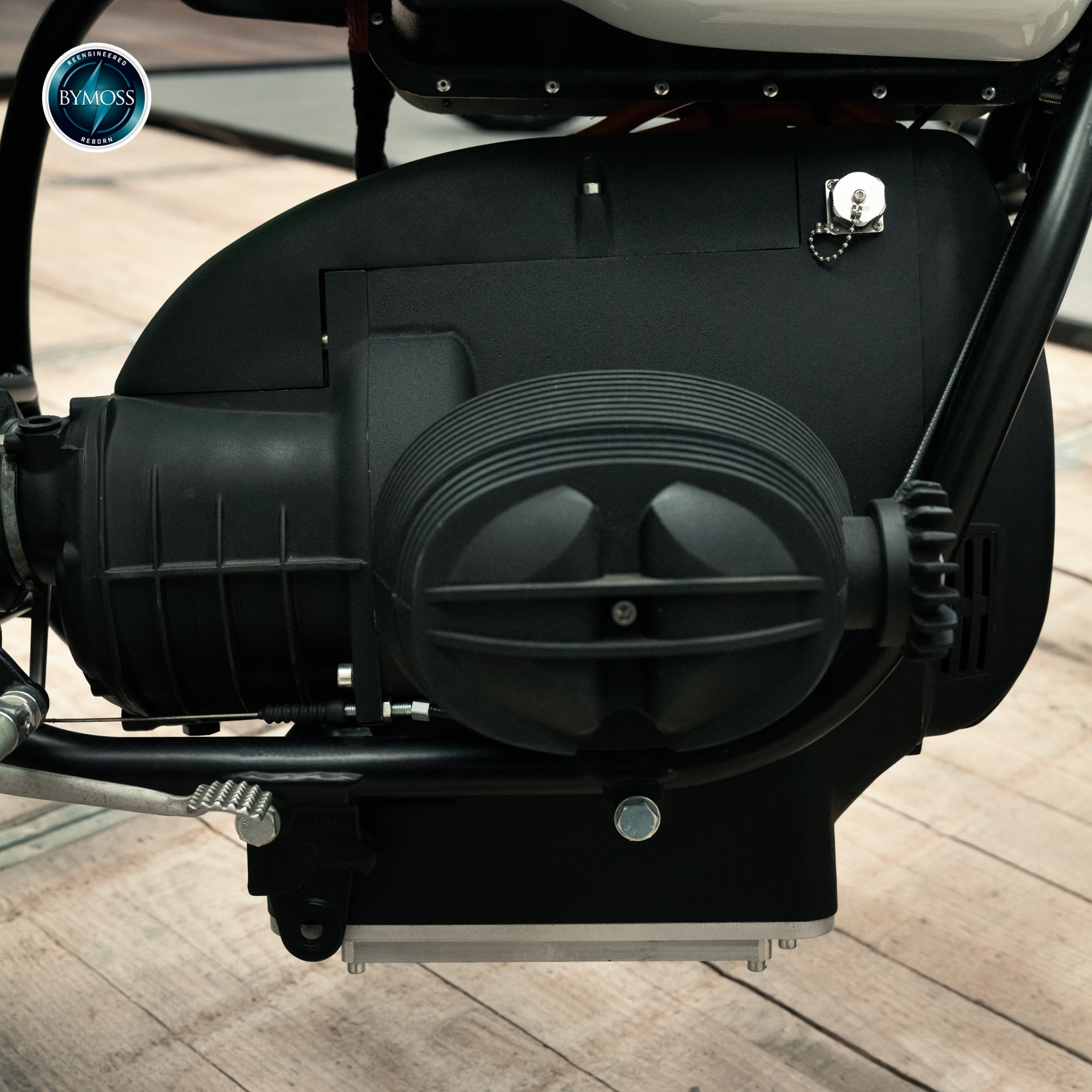 What distinguishes the Pure Conversion from all other solutions on the market: the complete retention of the original transmission. Where most retrofits remove the gearbox to simplify installation, Bymoss chooses to keep it — because it is precisely this gearbox that gives the BMW R Series its unique character. The electric motor is calibrated to operate within the original RPM ranges, providing the same progressive response and mechanical engagement as the internal combustion version.