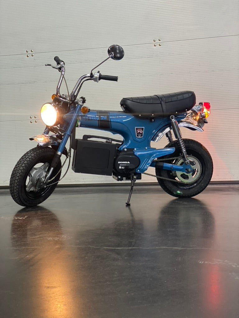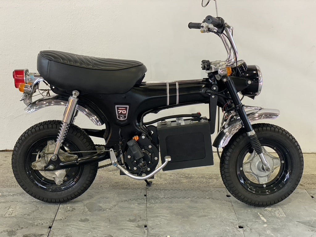 Redécouvrez l’esprit du DAX Honda avec une touche d’innovation ! Ce classique, désormais équipé d’un moteur électrique de pointe, conserve son charme et son design vintage tout en offrant une conduite silencieuse et respectueuse de l'environnement. Avec notre rétrofit, nous avons transformé cette légende des années 70 en une machine moderne et durable, idéale pour les trajets en ville ou les escapades tranquilles.